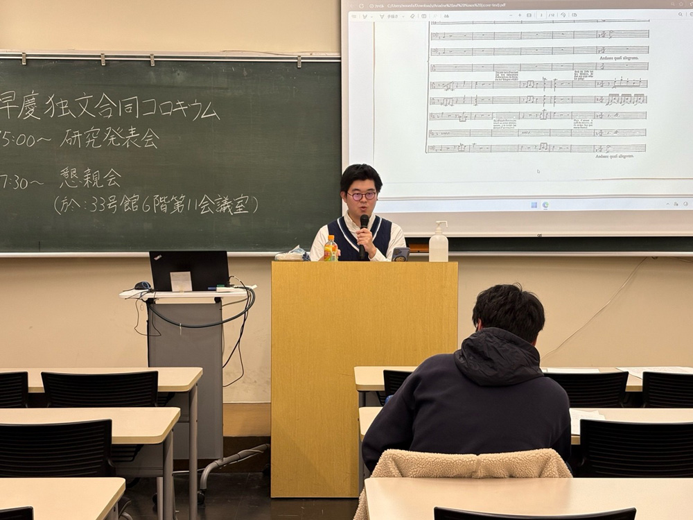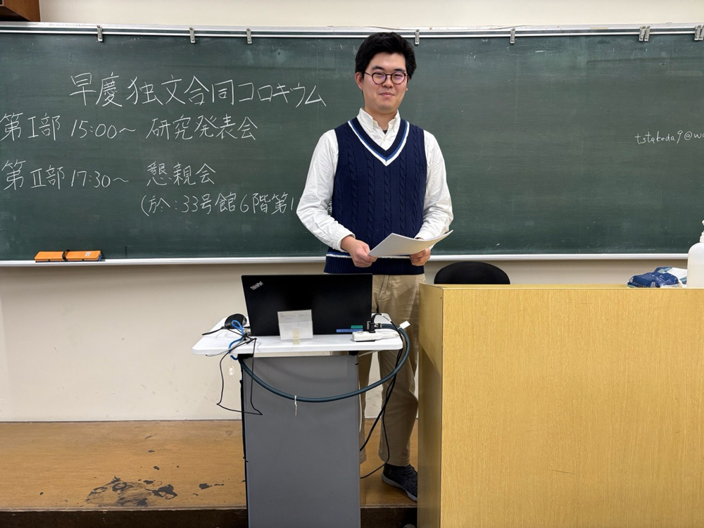 慶應義塾大学と早稲田大学の関係者による「早慶独文コロキウム」(第4回、2025年11月29日、於:早稲田大学)において、博士課程2年の柴田晴大さんが発表を行いました。